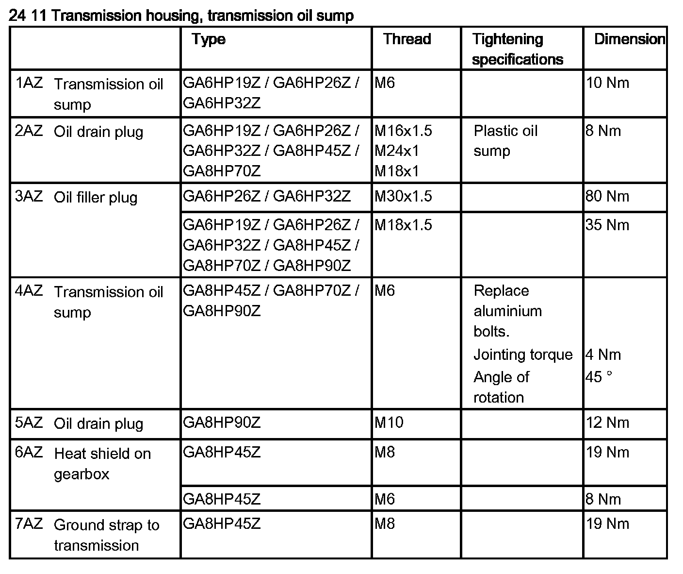 24 11 014 Removing And Installing/Sealing Or Replacing Transmission Oil Sump (GA8HP45Z)