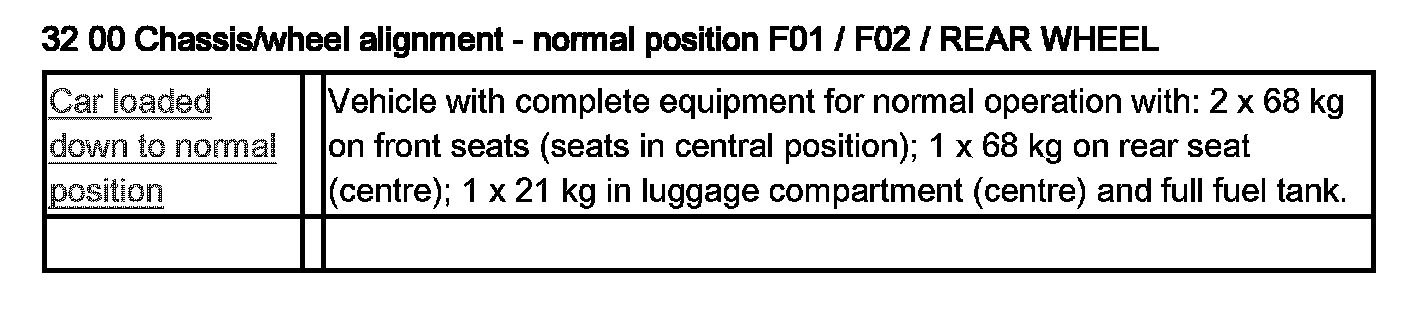 32 00 Chassis/Wheel Alignment - Normal Position F01, F02 / Rear Wheel