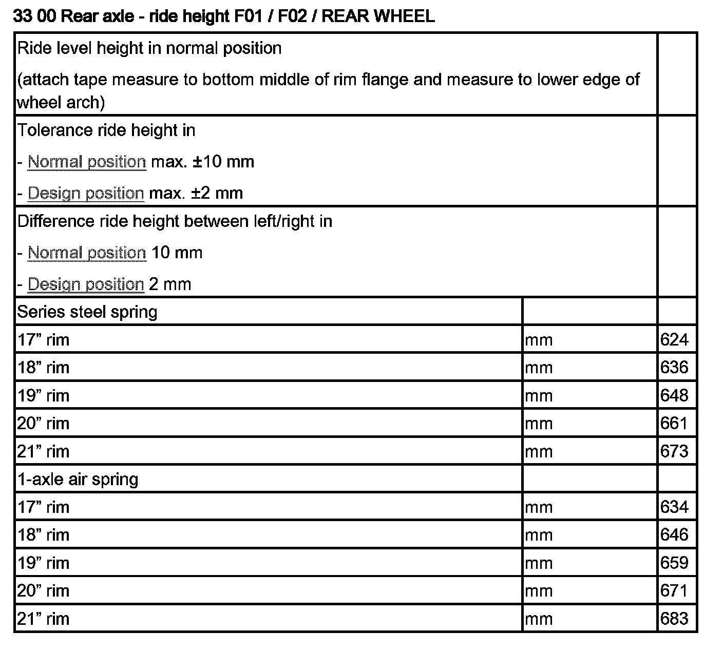 33 00 Rear Axle - Ride Height F01 / F02/ Rear Wheel