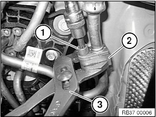 When tightening the screw connection (1), apply counter support with wrench (3) at the line (2)!