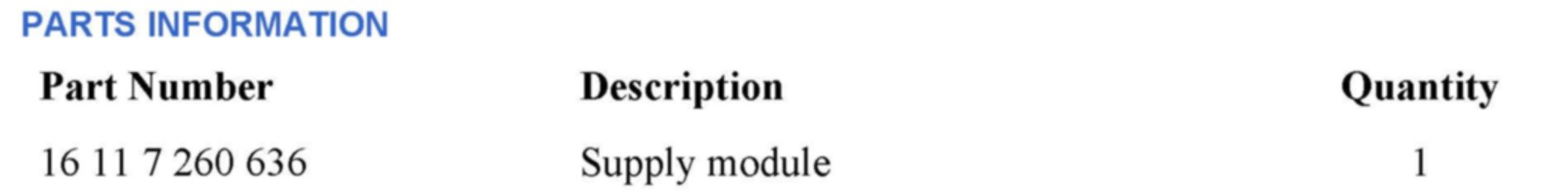 PARTS INFORMATION