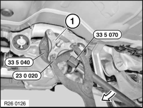 Release insert nut against direction of travel in clockwise direction with special tool 33 5 040 and 33 5 070.