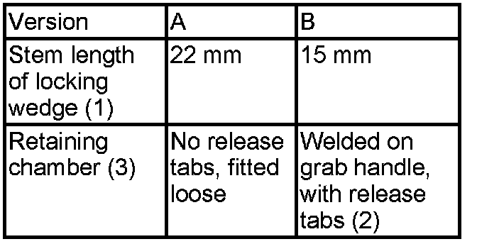 Disengage and remove locking wedge (2) with offset screwdriver (3), as illustrated.