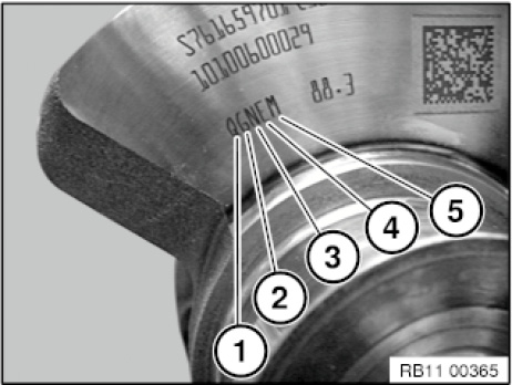 The letters on the crankcase denote the bearing shell classification for the relevant bearing position from 1 to 5 in the crankcase.