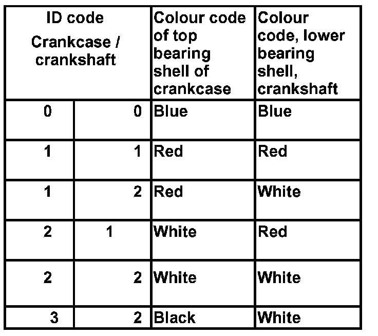 The letters from the crankcase and crankshaft are required to determine the bearing shell colors.