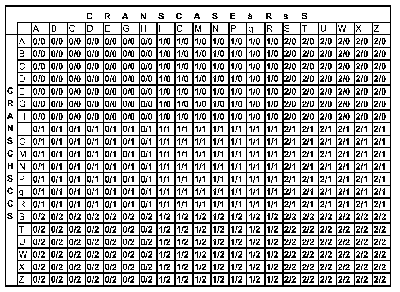 The first letter on the left applies to the first bearing position at the front on the timing chain drive.