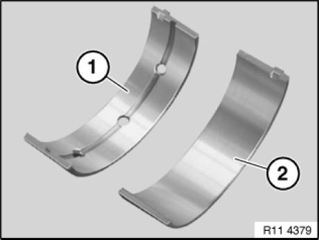 Install main bearing shells (2) without lubrication groove in the main bearing caps.