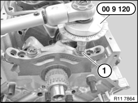 Tighten down all collar bolts (M11) of main bearing caps with special tool 00 9 120 with angle of rotation.