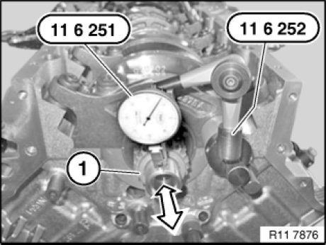 Secure special tool 11 6 252 with magnetic foot on crankcase.