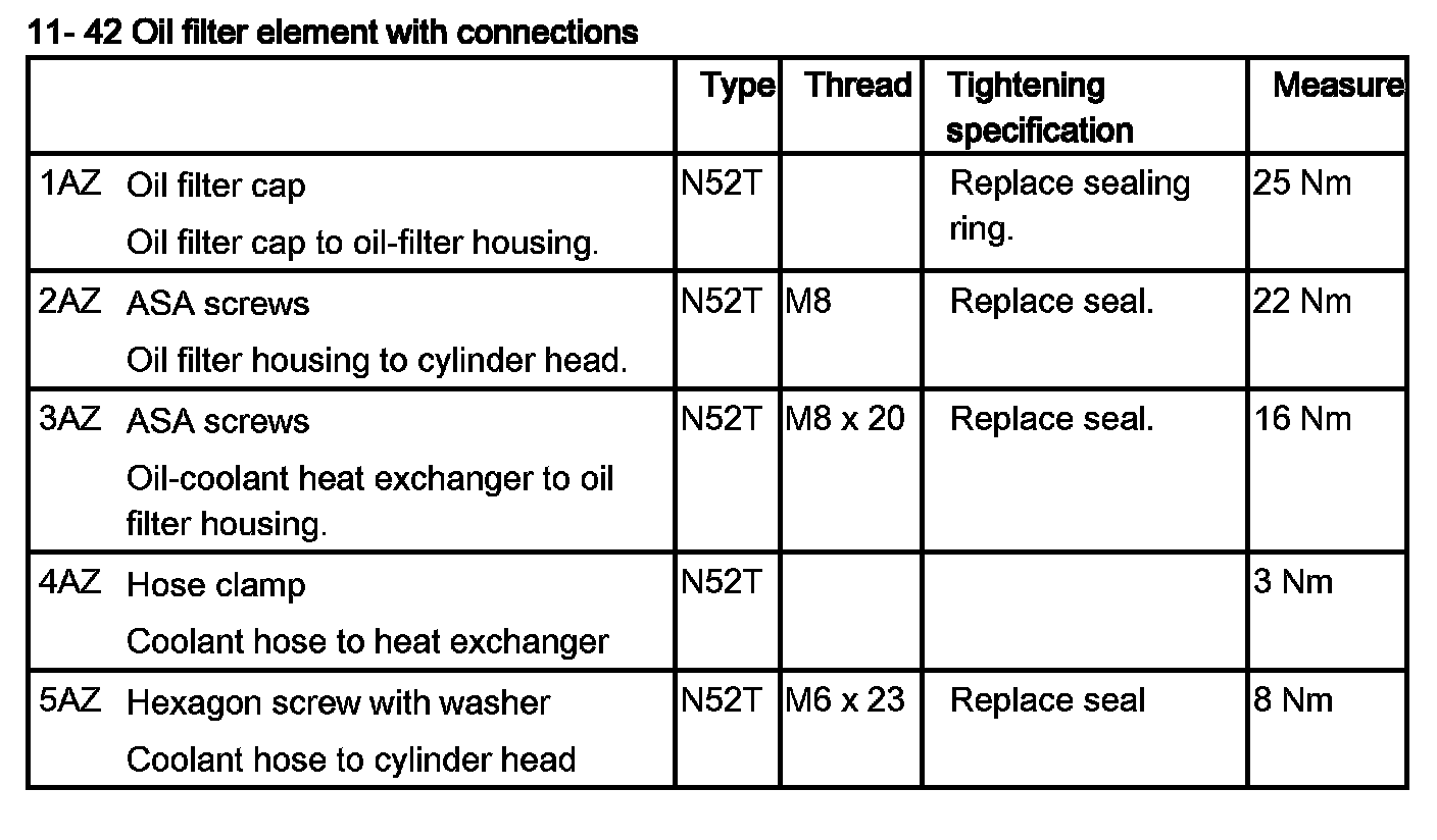 Tightening torque 11 42 1AZ.