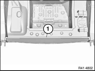 Open welded connections in area (1) and remove cross member (2).