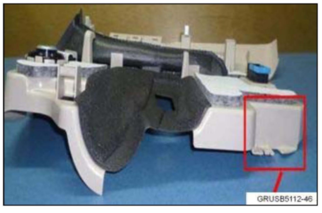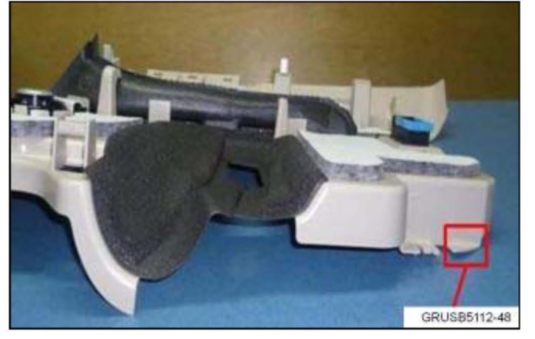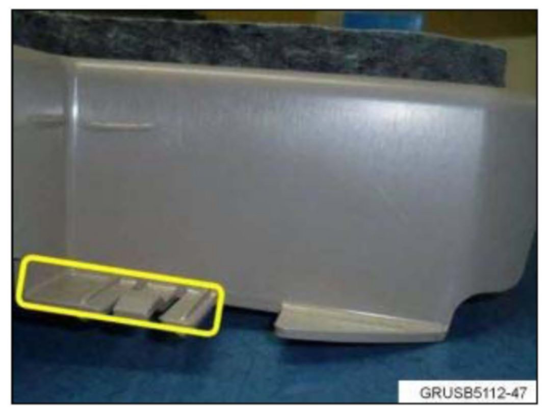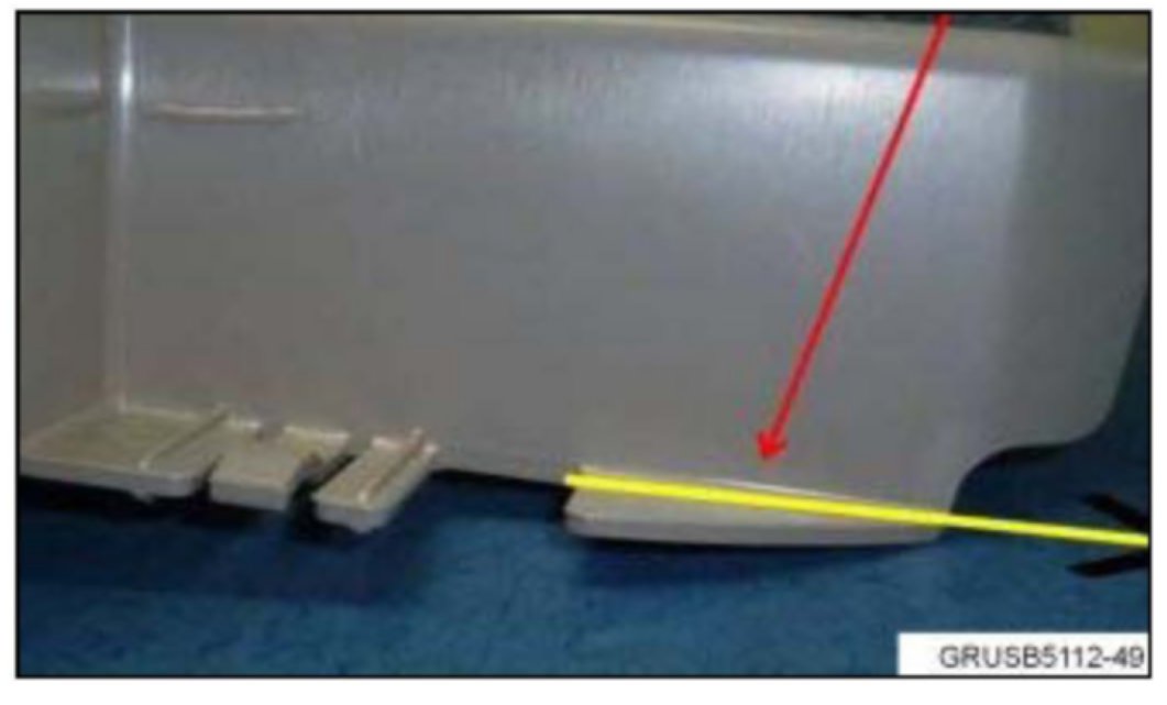 5. Use a proper tool, and cut off the plastic corner tab along the yellow line. Reinstall the trim and confirm the noise is gone. Lightly tap in the same area to confirm the noise is gone.