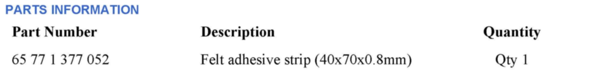 3. Apply a self-adhesive felt strip, measuring 20 x 60 x 0.8 mm, to the trim area shown in the yellow box.