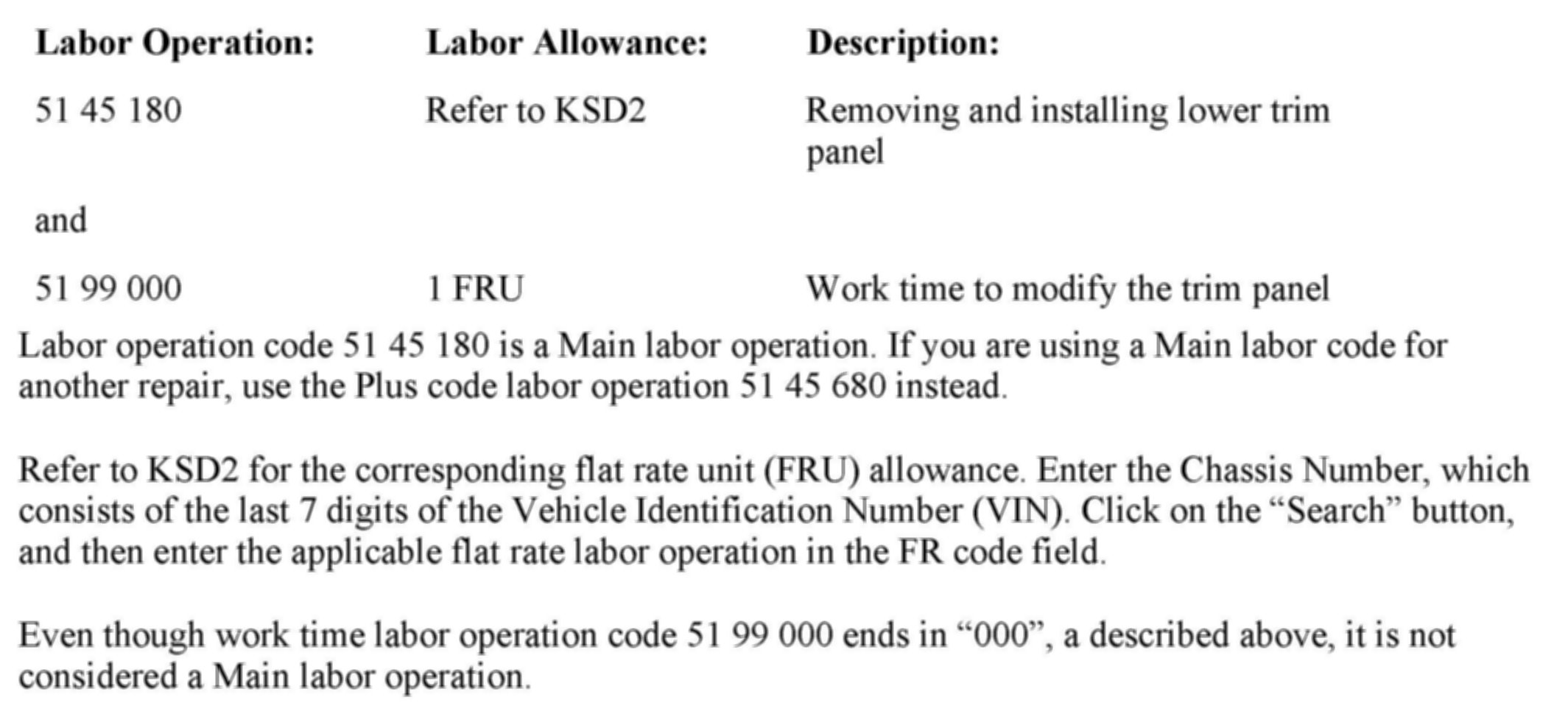 1. Remove the drivers side pedal assembly trim, using the Repair Instructions 51 45 184.