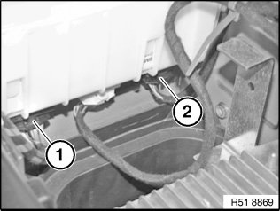 Unclip all cable clips on wiring harness (2) and feed out in leftward direction.