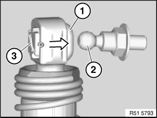 Press ball socket (1) onto ball pin (2) until retaining spring (3) engages correctly (clicking sound).