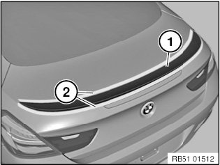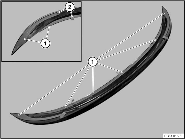 Apply double-sided adhesive tape (1) to rear spoiler (distance to spoiler outer edge approx. 1 mm).