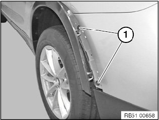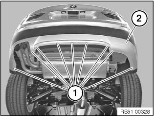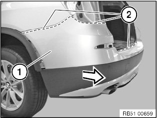 - Pull bumper panel (1) straight towards rear with aid of a 2nd person