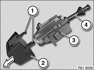 Lever out cap (1) and release screw underneath.