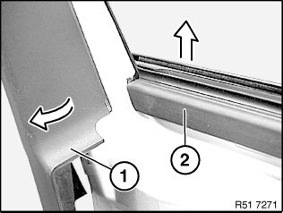 Start at rear with removal of weather strip (2).