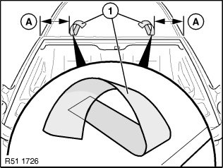 Stick two yellow plastic adhesive tapes (1) to roof at distance (A) from outside corners.