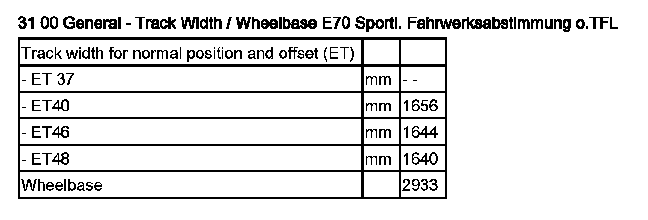31 00 General - Track Width / Wheelbase E70 / Sports Suspension, Not Low-Slung