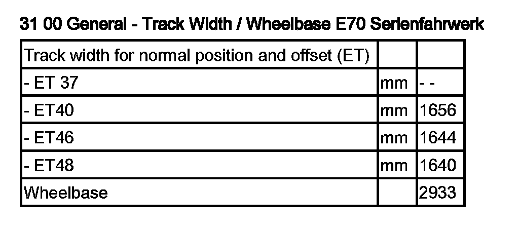 31 00 General - Track Width / Wheelbase E70 / Standard Suspension