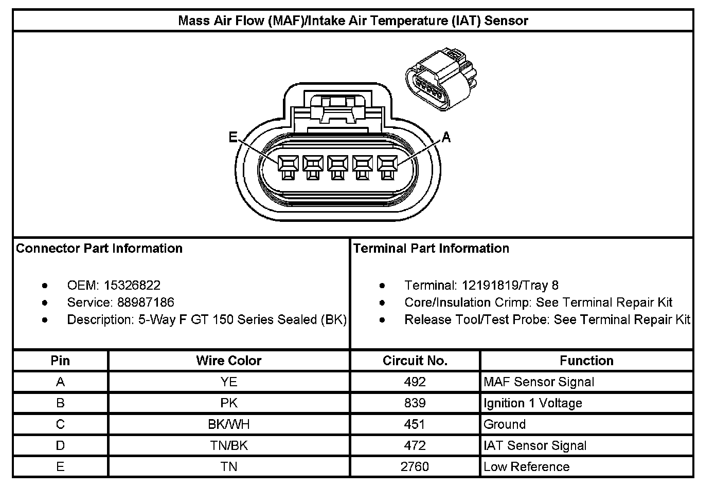 Mass Air Flow (MAF)/Intake Air Temperature (IAT) Sensor: