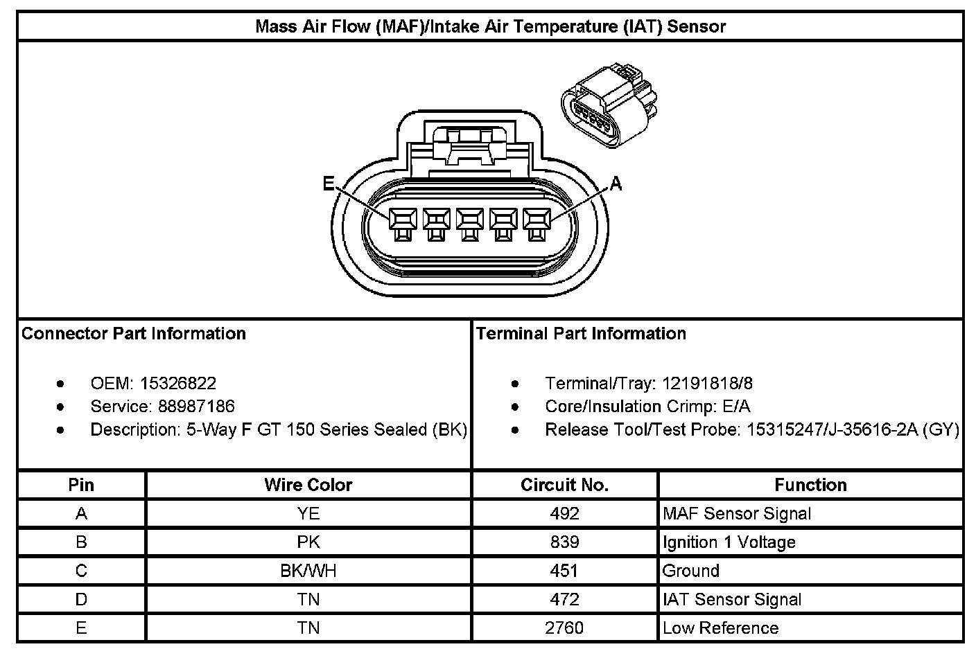 Mass Air Flow (MAF)/Intake Air Temperature (IAT) Sensor: