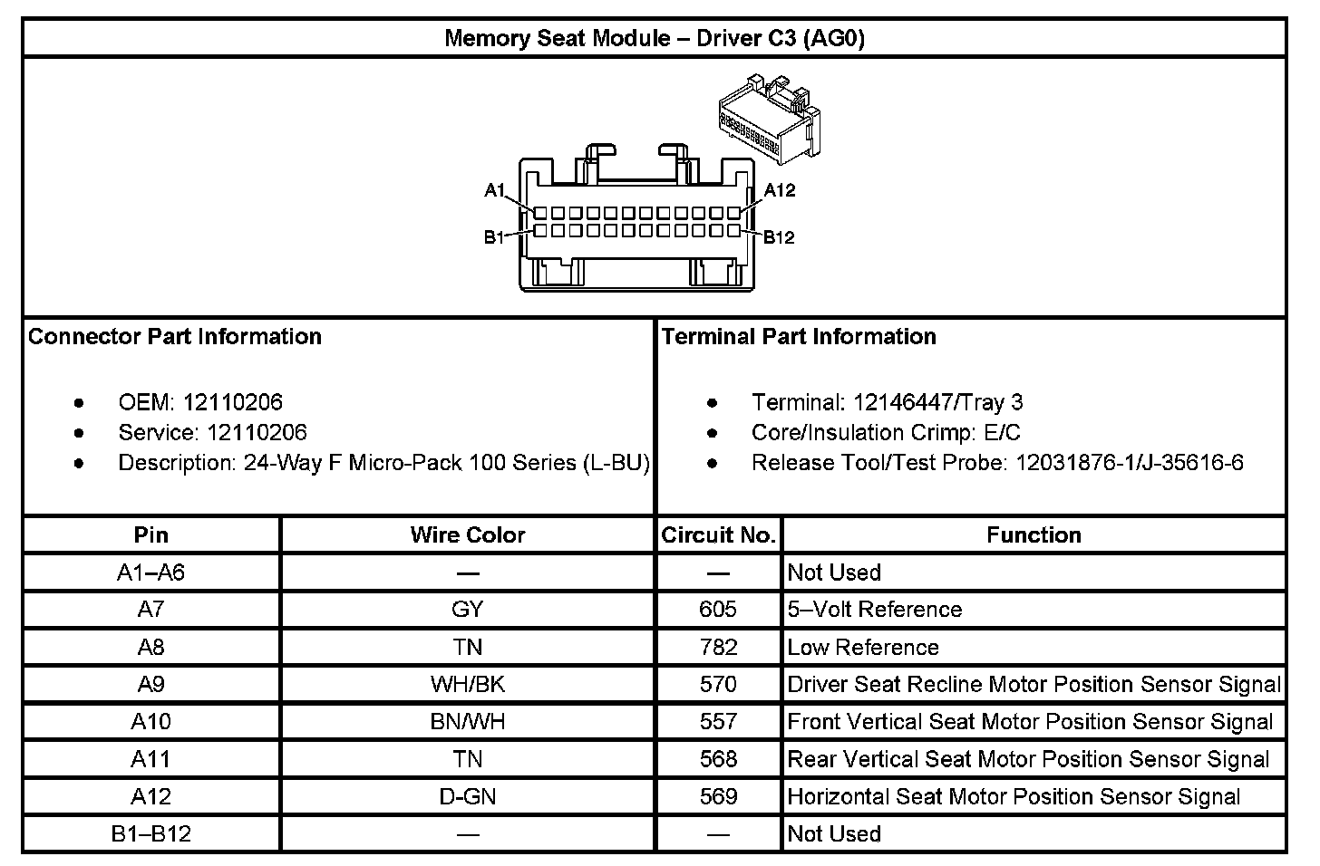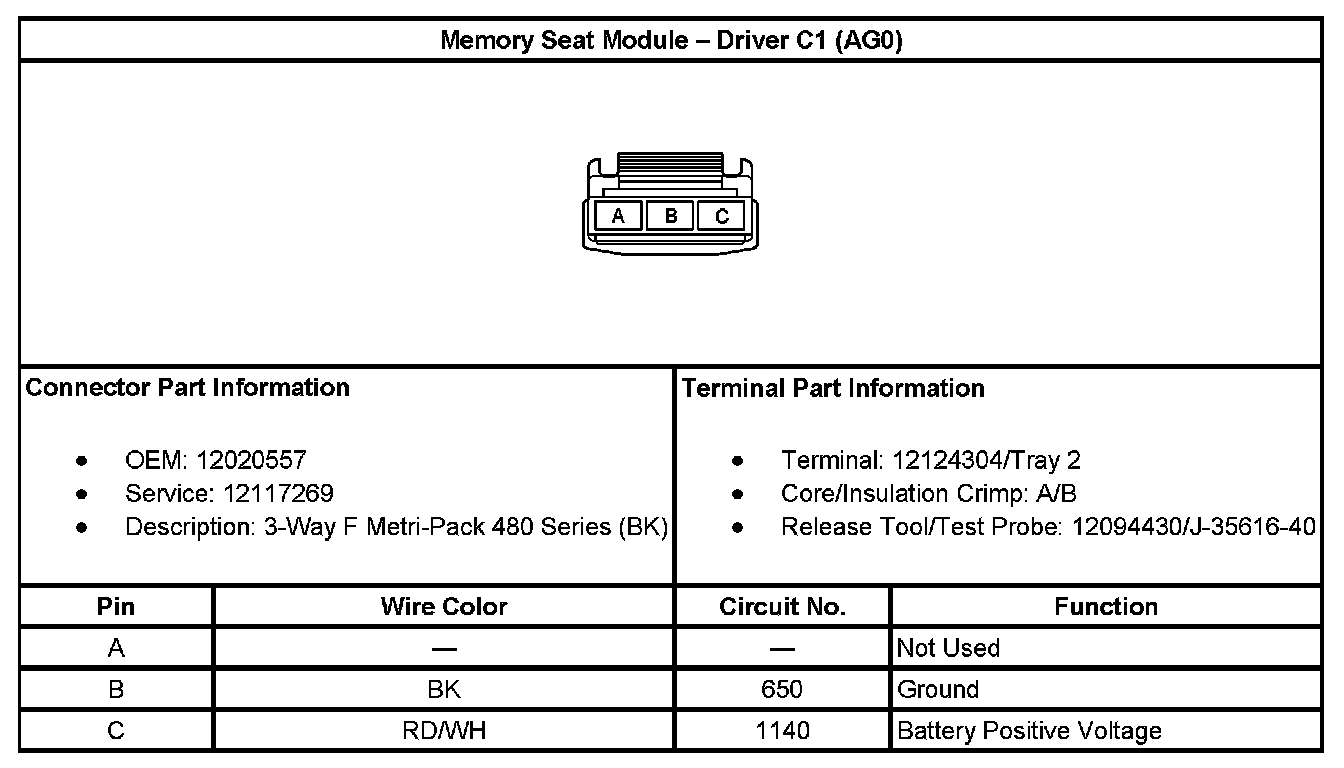 Memory Seat Module - Driver C3 (With RPO Code AG0):