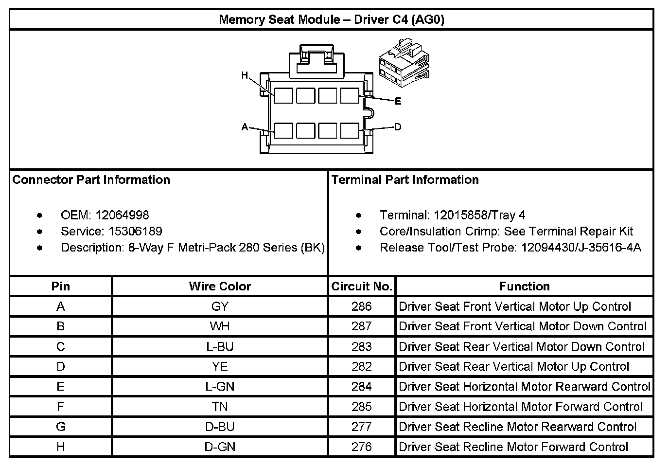 Memory Seat Module - Driver C4 (With RPO Code AG0):