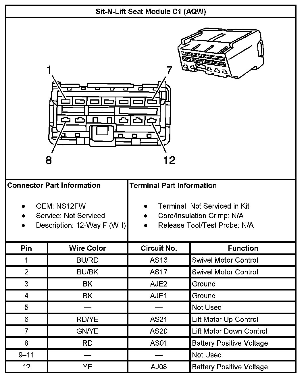 Sit-N-Lift Seat Module C1 (With RPO Code AQW):
