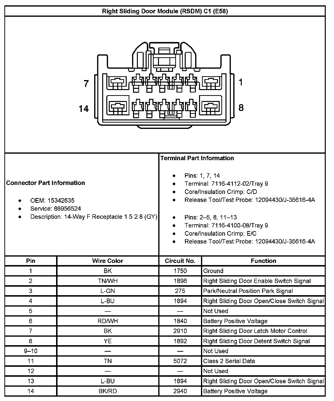 Right Sliding Door Module (RSDM) C1 (With RPO Code E58):