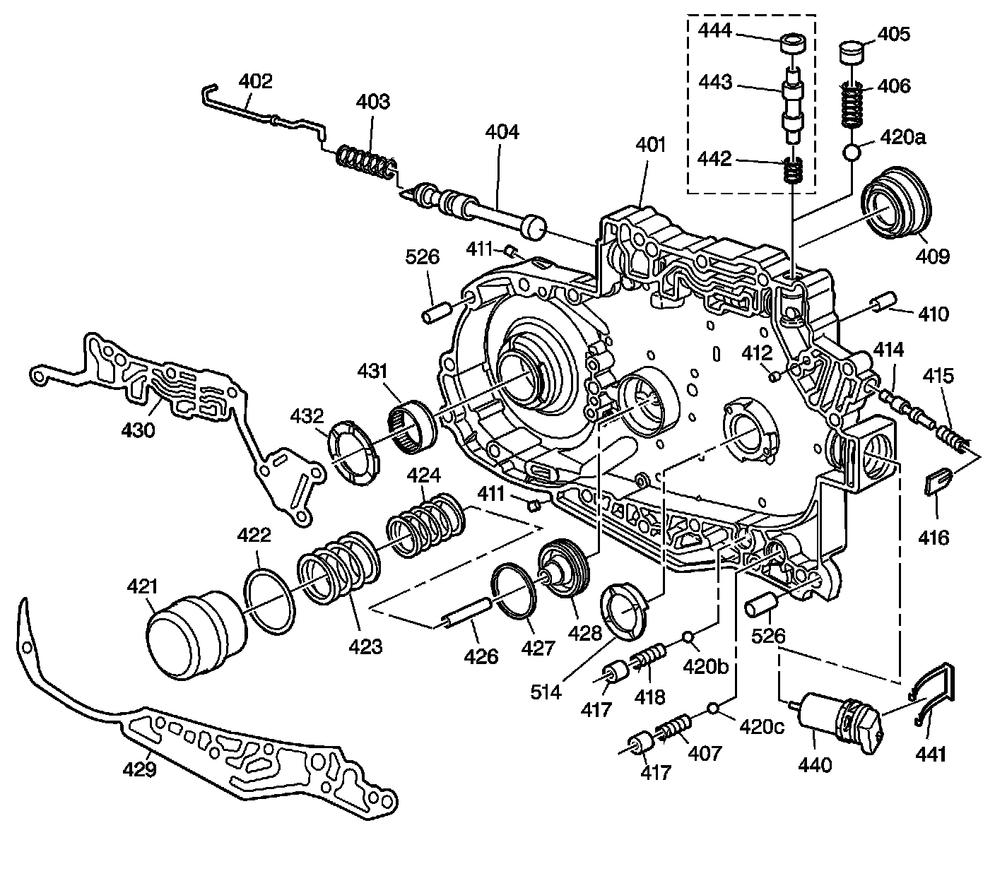 444 - Low Regulator Valve Bore Plug 3-4 Accumulator Valve - Some Models have touch activated Power
