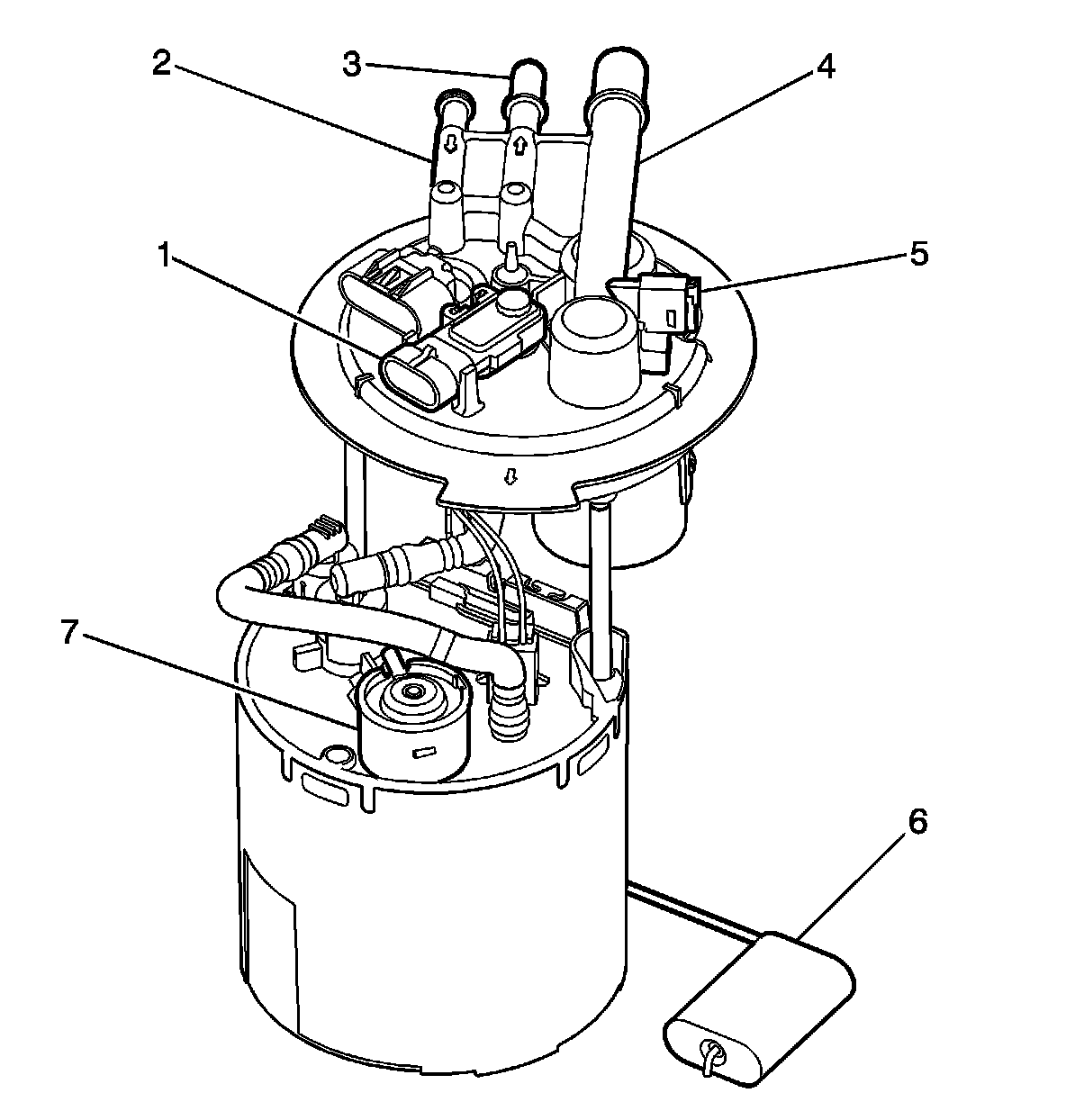 The fuel level sensor consists of a float, a wire float arm, and a ceramic resistor card. The position of the float arm indicates the fuel level. The fuel level sensor contains a variable resistor which changes resistance in correspondence with the amount of fuel in the fuel tank. The engine control module (ECM) sends the fuel level information via the class 2 circuit to the instrument panel cluster (IPC). This information is used for the instrument panel (I/P) fuel gage and the low fuel warning indicator, if applicable. The ECM also monitors the fuel level input for various diagnostics.