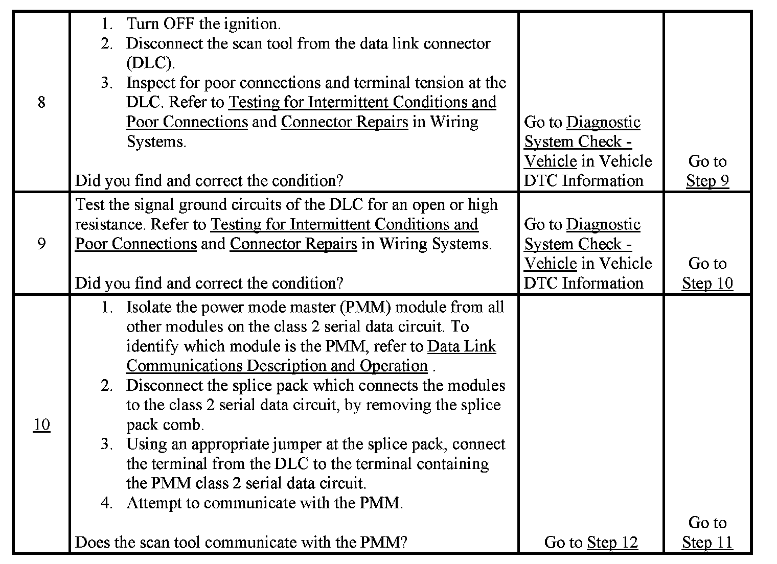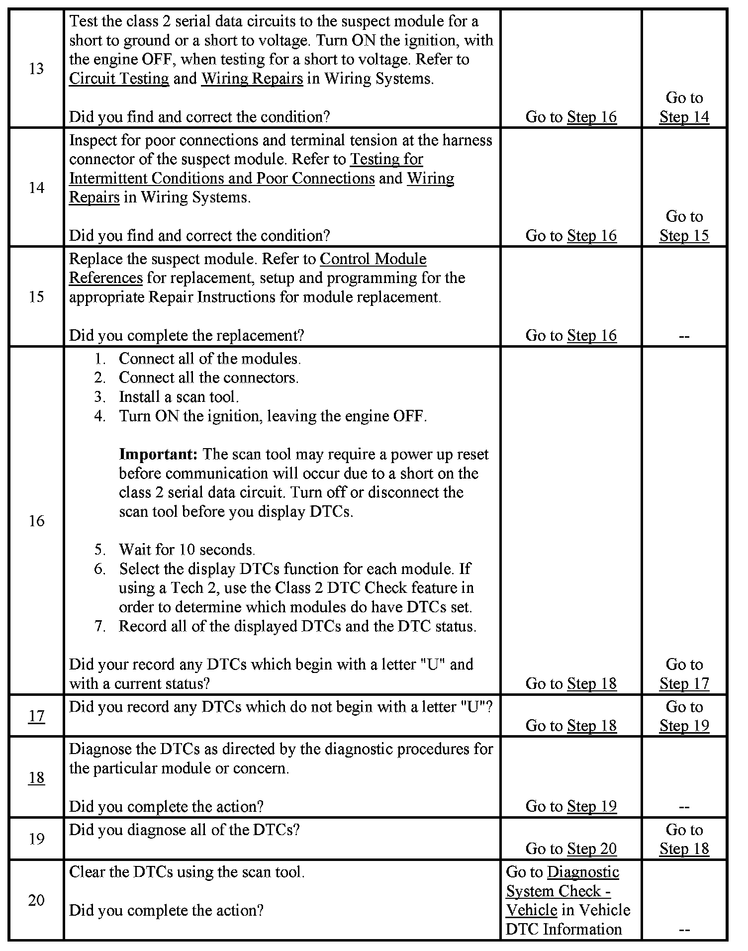 12. This step uses the loss of communications with a class 2 serial data circuit to locate the probable malfunction.