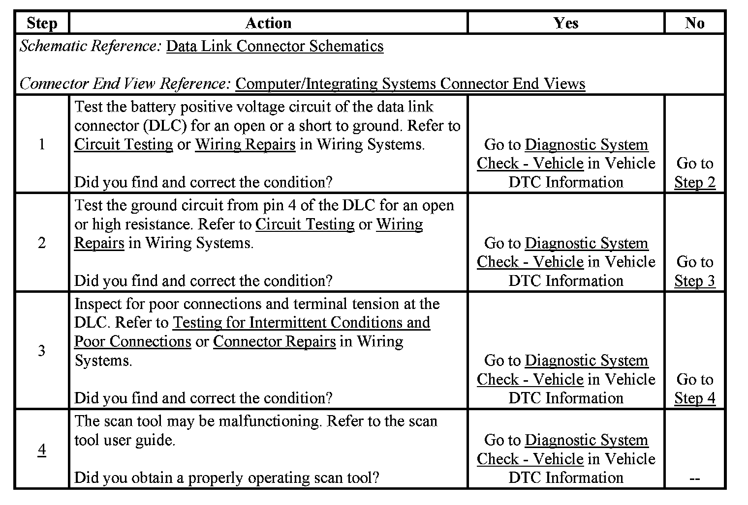 4. If the battery positive voltage and ground circuits of the DLC are functioning properly. The malfunction must be due to the scan tool.