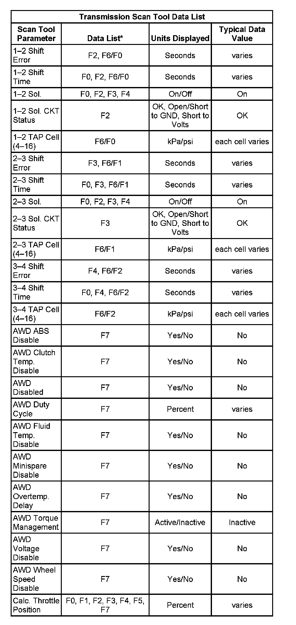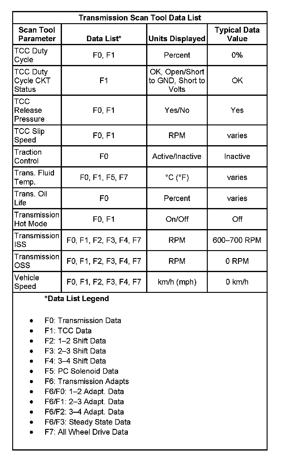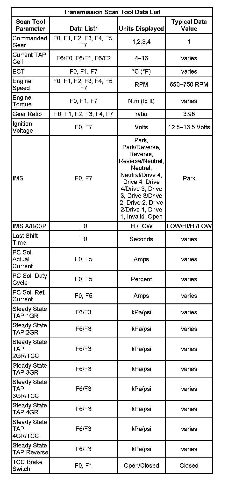 Only the parameters listed below are used in this manual for diagnosing. If a scan tool displays other parameters, the values are not recommended by General Motors for use in diagnosis.
