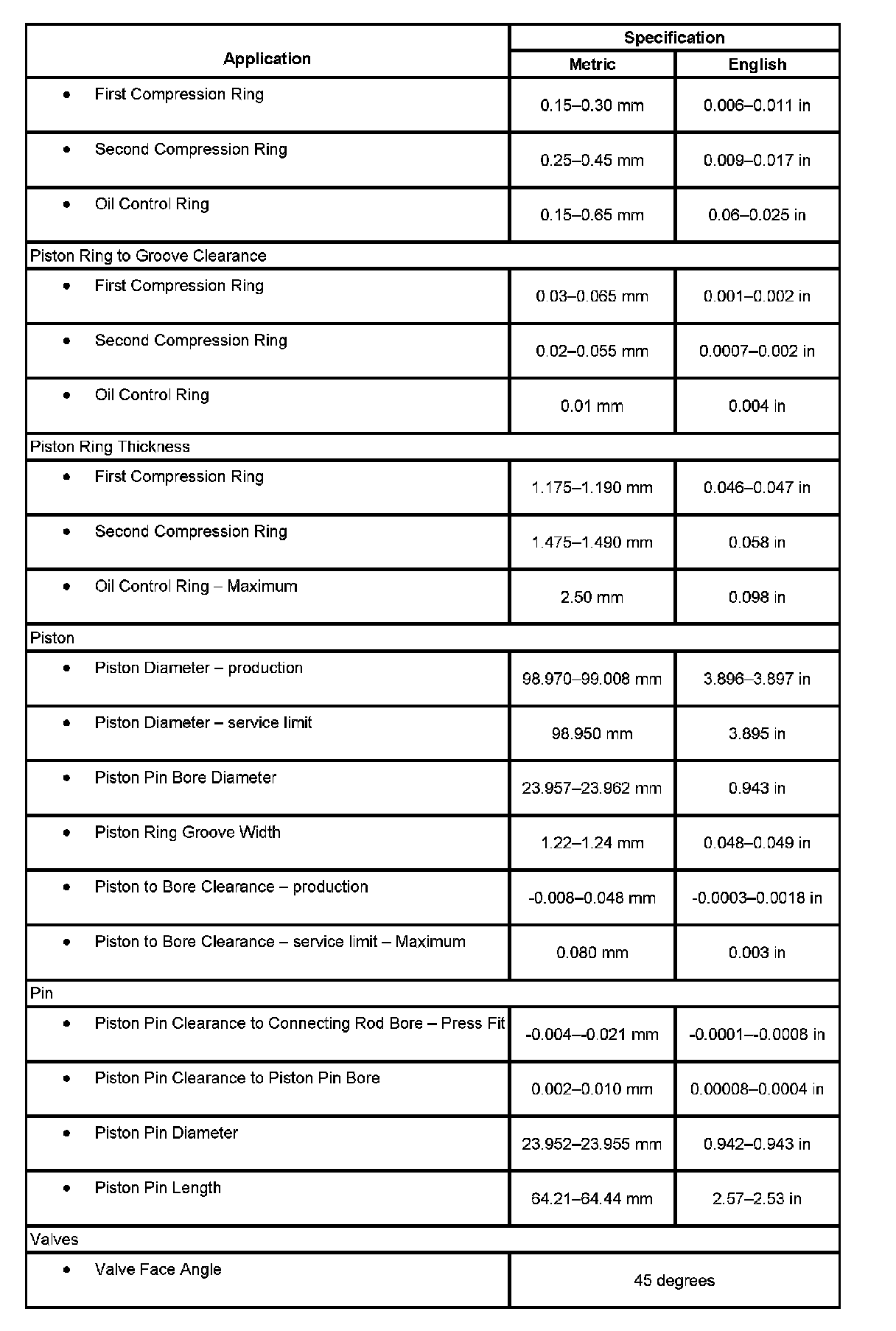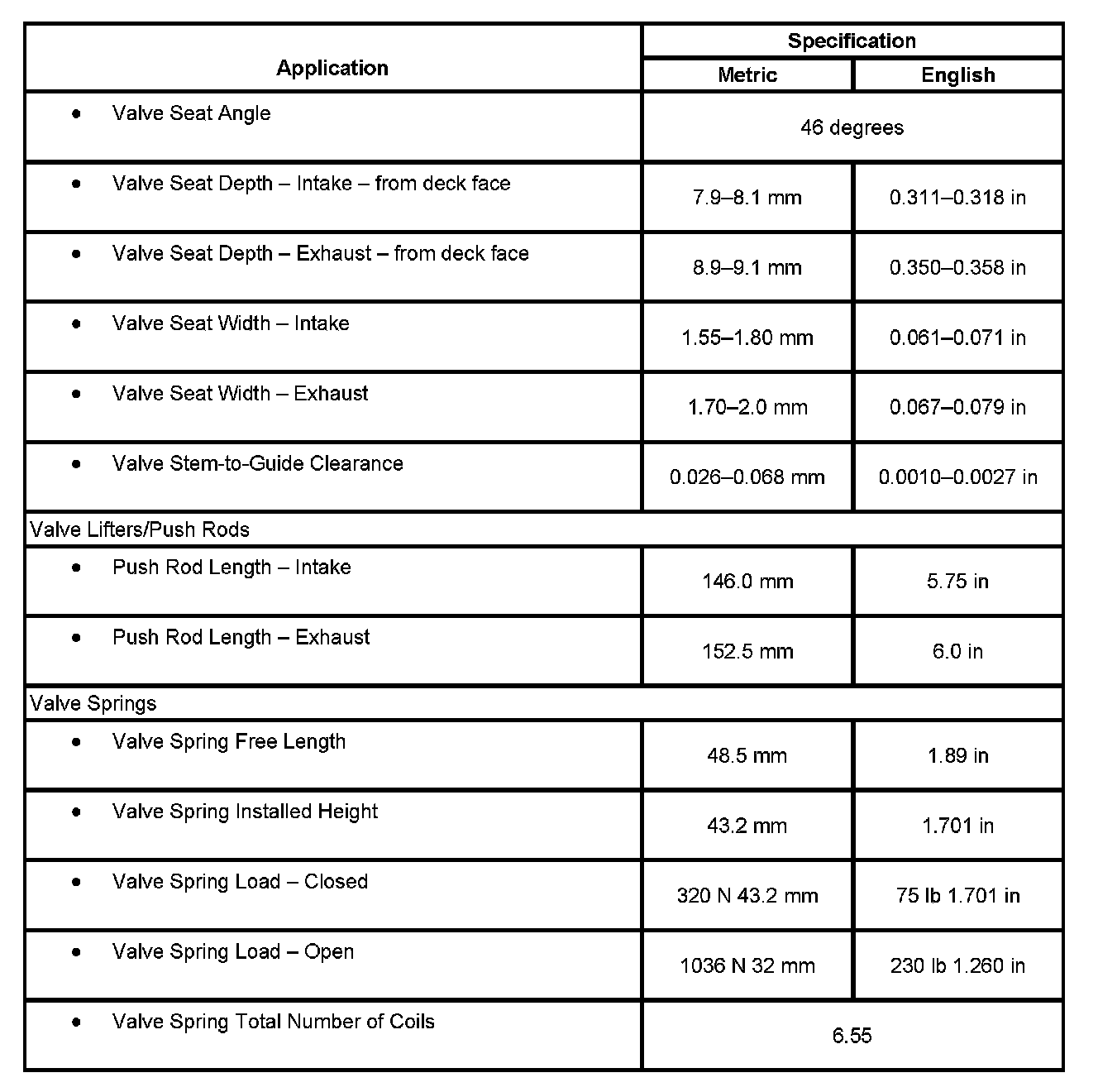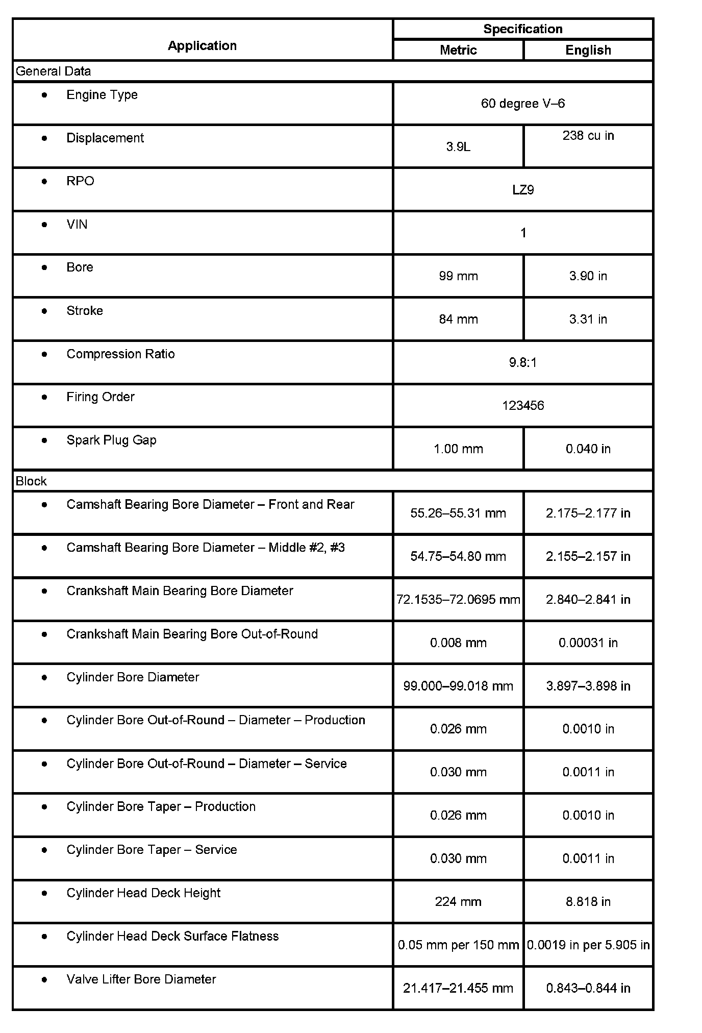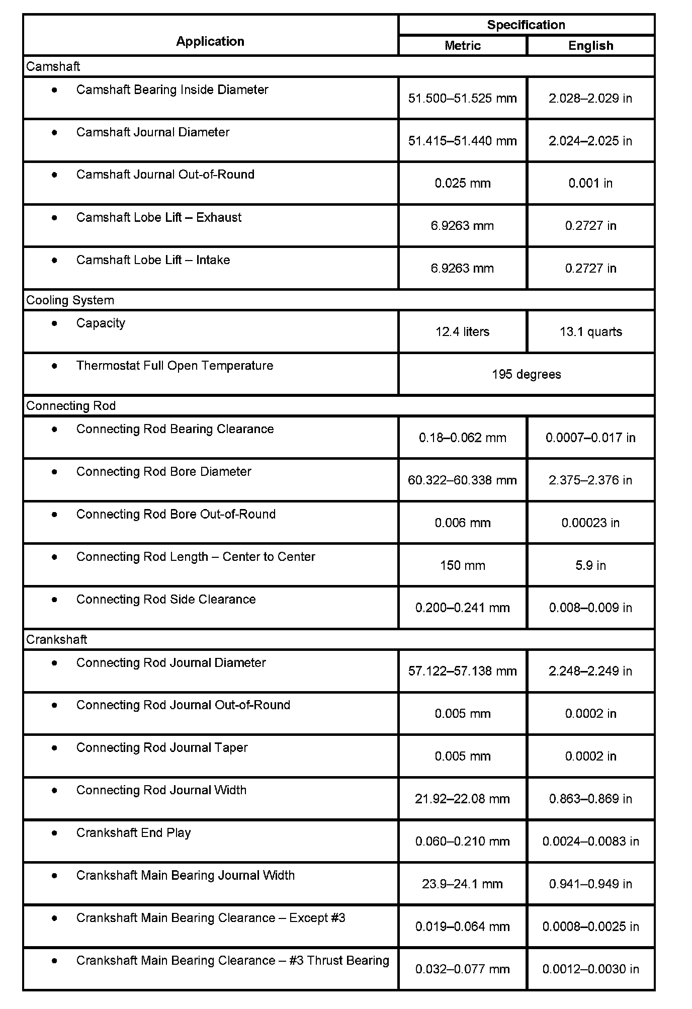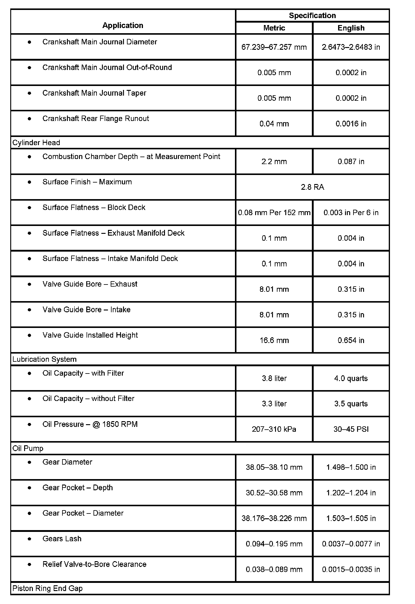 Engine Mechanical Specifications: