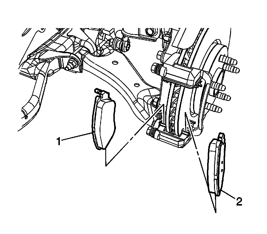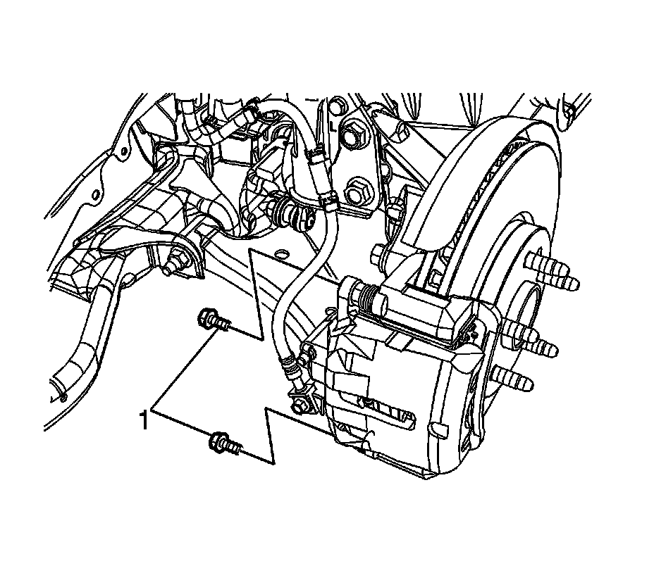 Support the brake caliper with heavy mechanic wire, or equivalent, whenever it is separated from its mount and the hydraulic flexible brake hose is still connected. Failure to support the caliper in this manner will cause the flexible brake hose to bear the weight of the caliper, which may cause damage to the brake hose and in turn may cause a brake fluid leak.