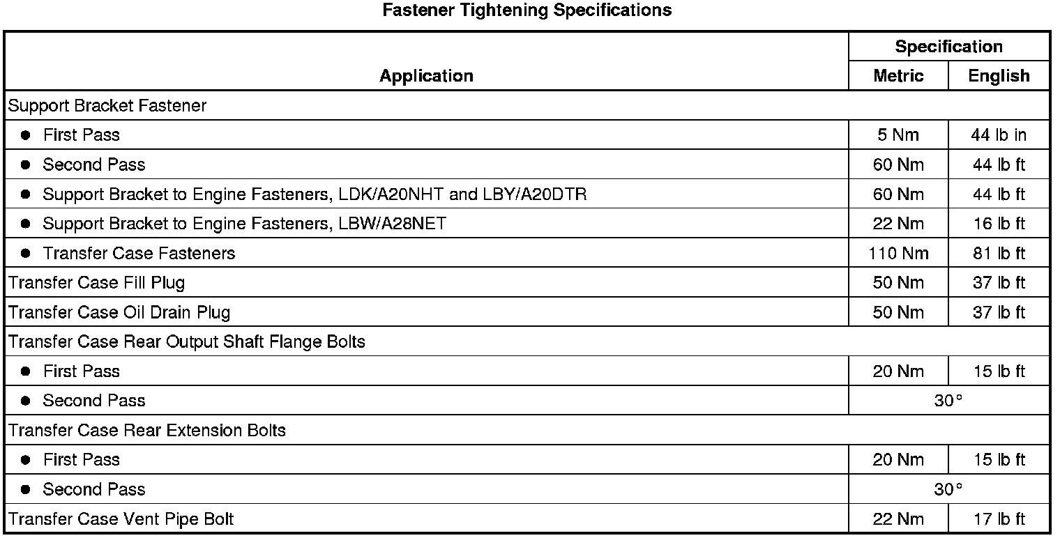 Fastener Tightening Specifications