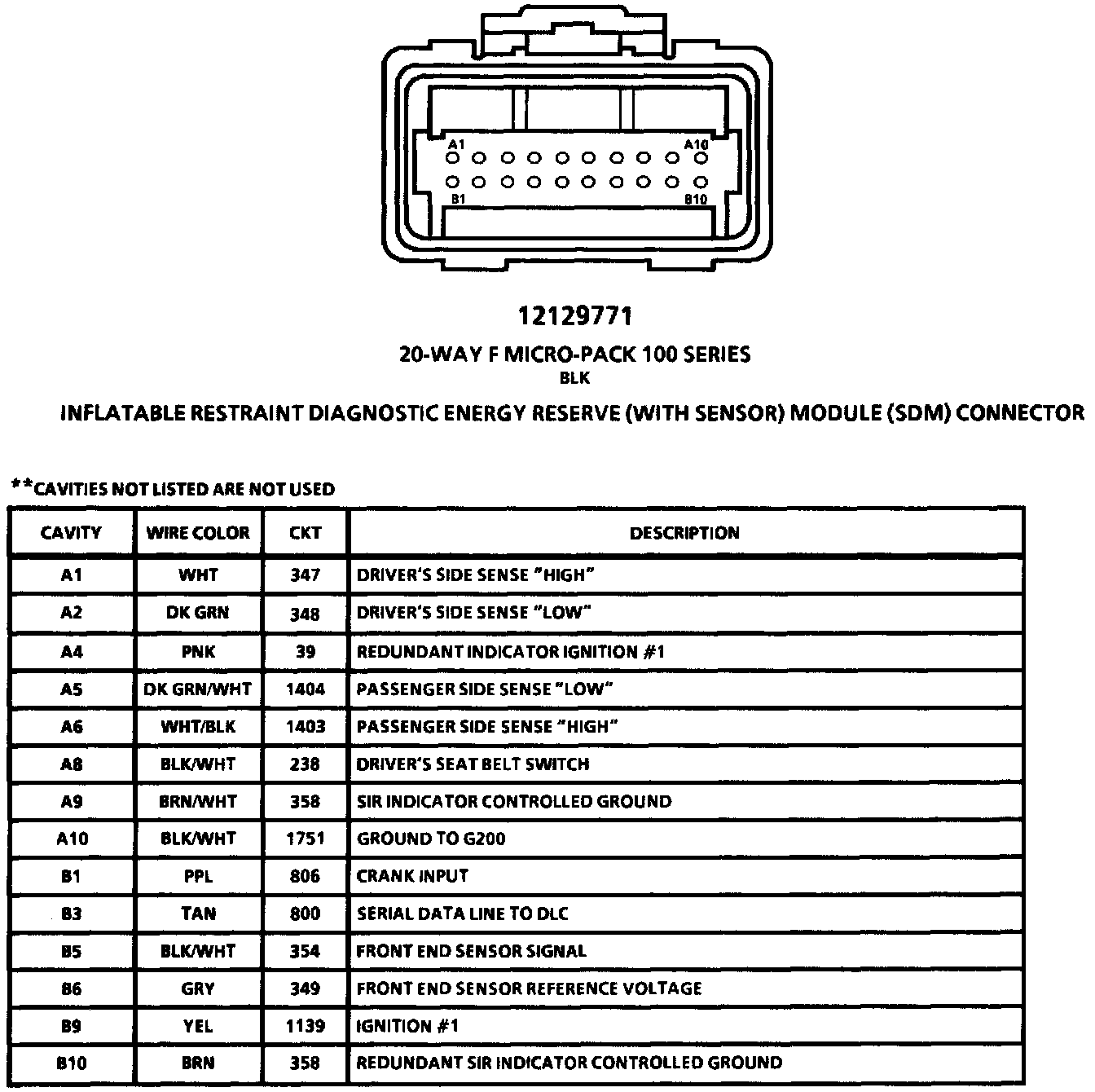 Inflatable Restraint Diagnostic Energy Reserve (With Sensor) Module (SDM) Connector View: