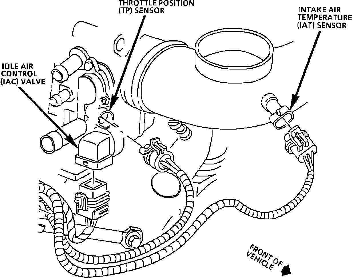 The throttle position (TP) sensor is mounted to the throttle body.