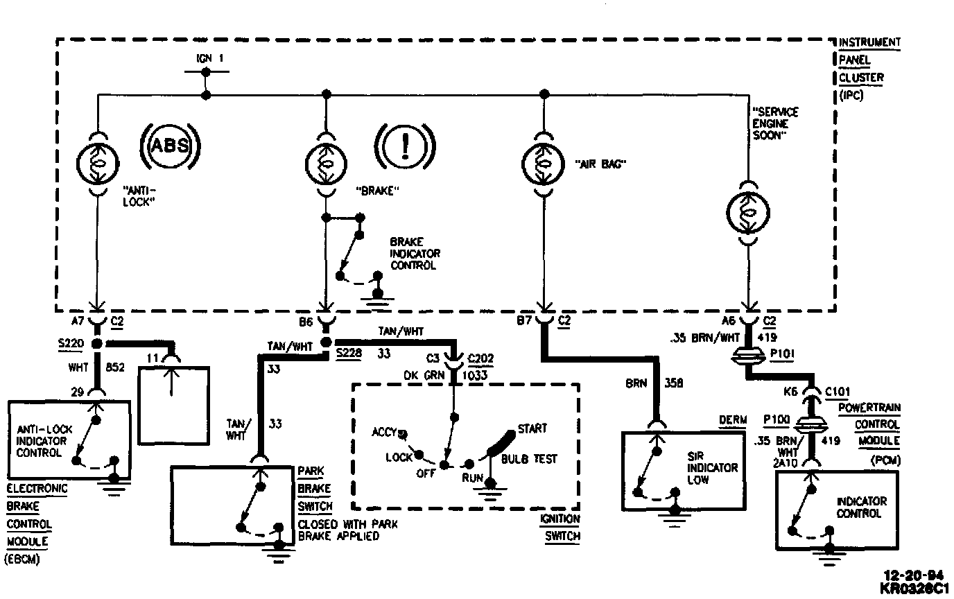 The ANTILOCK BRAKE telltale is directly controlled by the Antilock Brake System (ABS) module. Power for the telltale is pulled from the IPC Ignition 1 input (pin "C13", CKT 39). Refer to BRAKES AND TRACTION CONTROL for diagnosis. Brakes and Traction Control