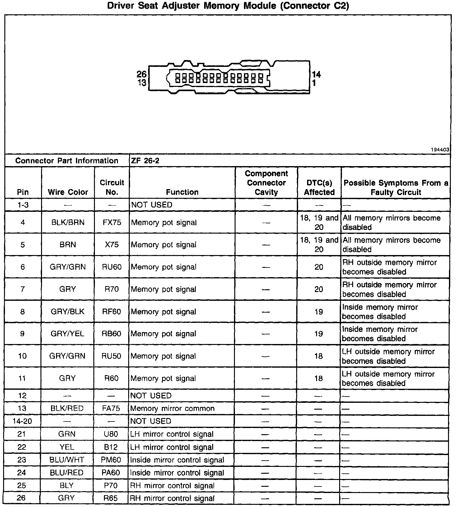 Driver Seat Adjuster Memory Module (Connector C2):