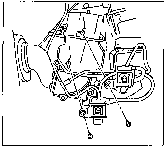 12. Remove the heater core inlet and outlet pipe retaining bracket screw.