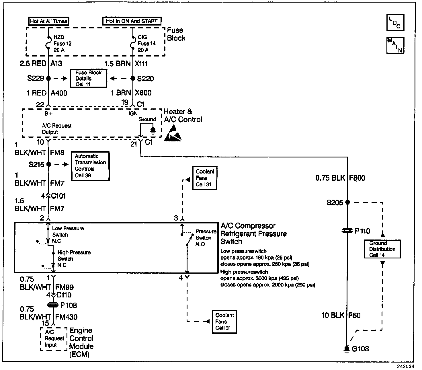 ^ Any condition which results in the interruption of power to the heater and A/C control.