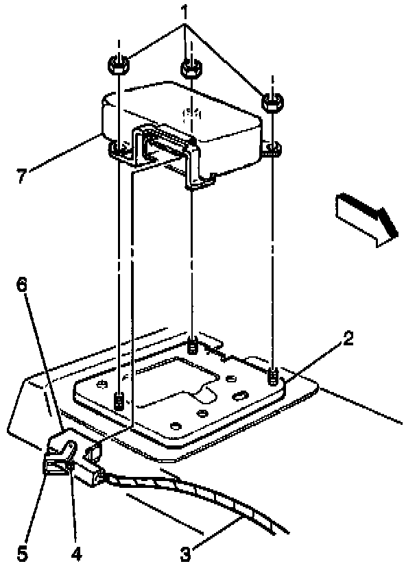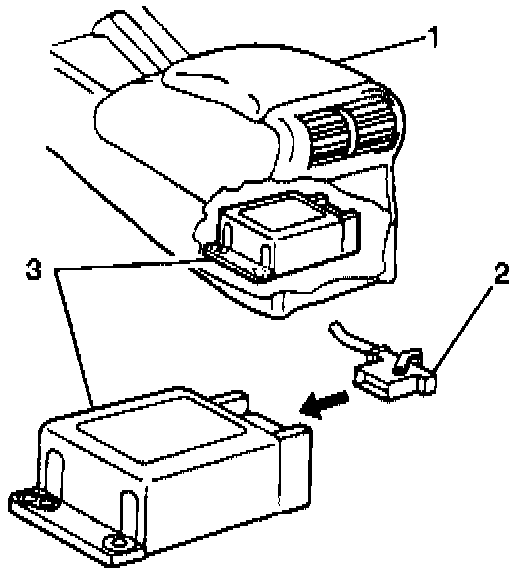 1. Install the SDM to the vehicle. Ensure that the arrow on the SDM points toward the front of the vehicle.