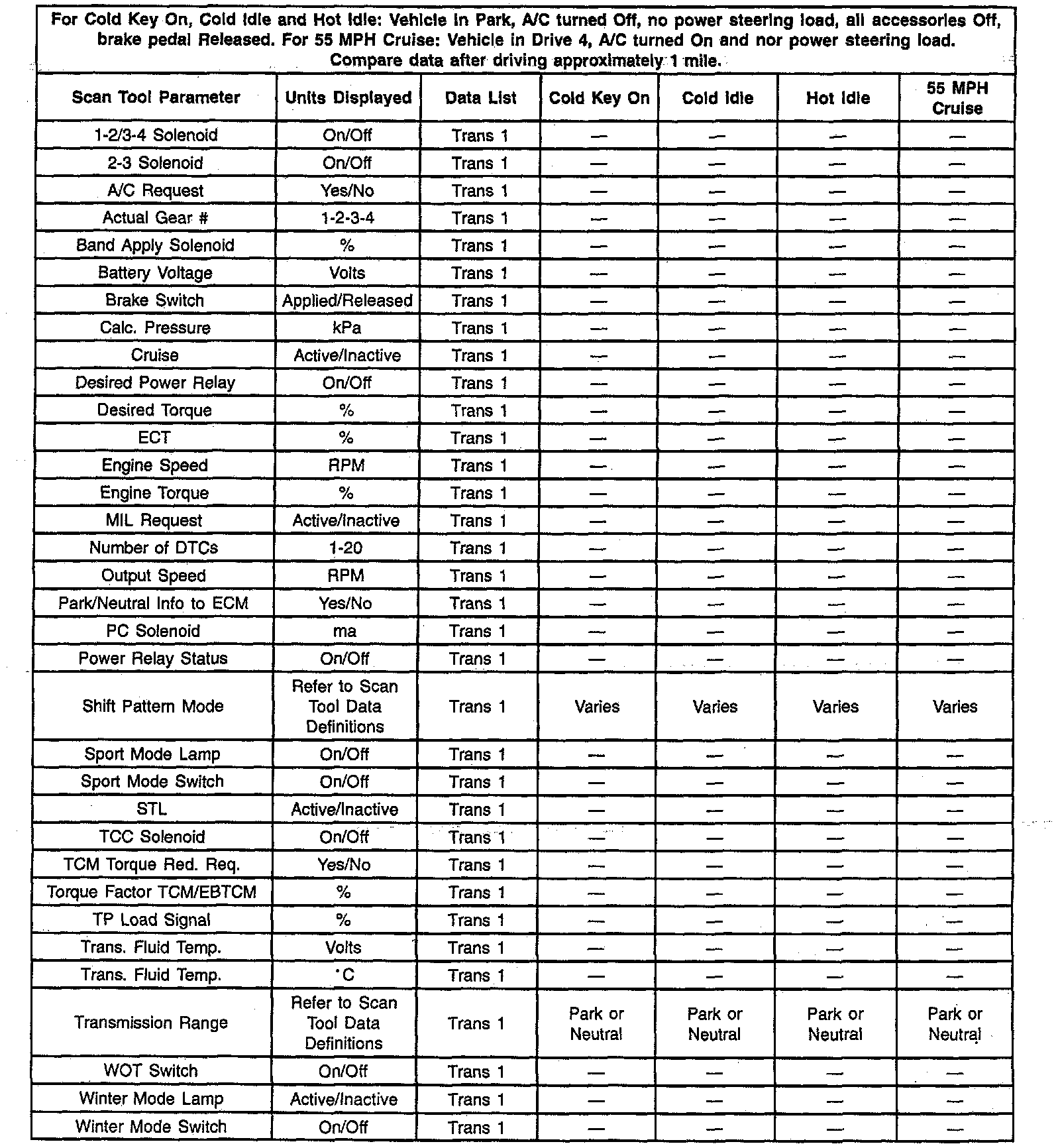 Only the parameters listed below are for use in diagnosis. For further information on using the scan tool in order to diagnose the TCM and related components, refer to the applicable reference section listed below. If all values are within the typical range described below, refer to SYMPTOMS for diagnosis.