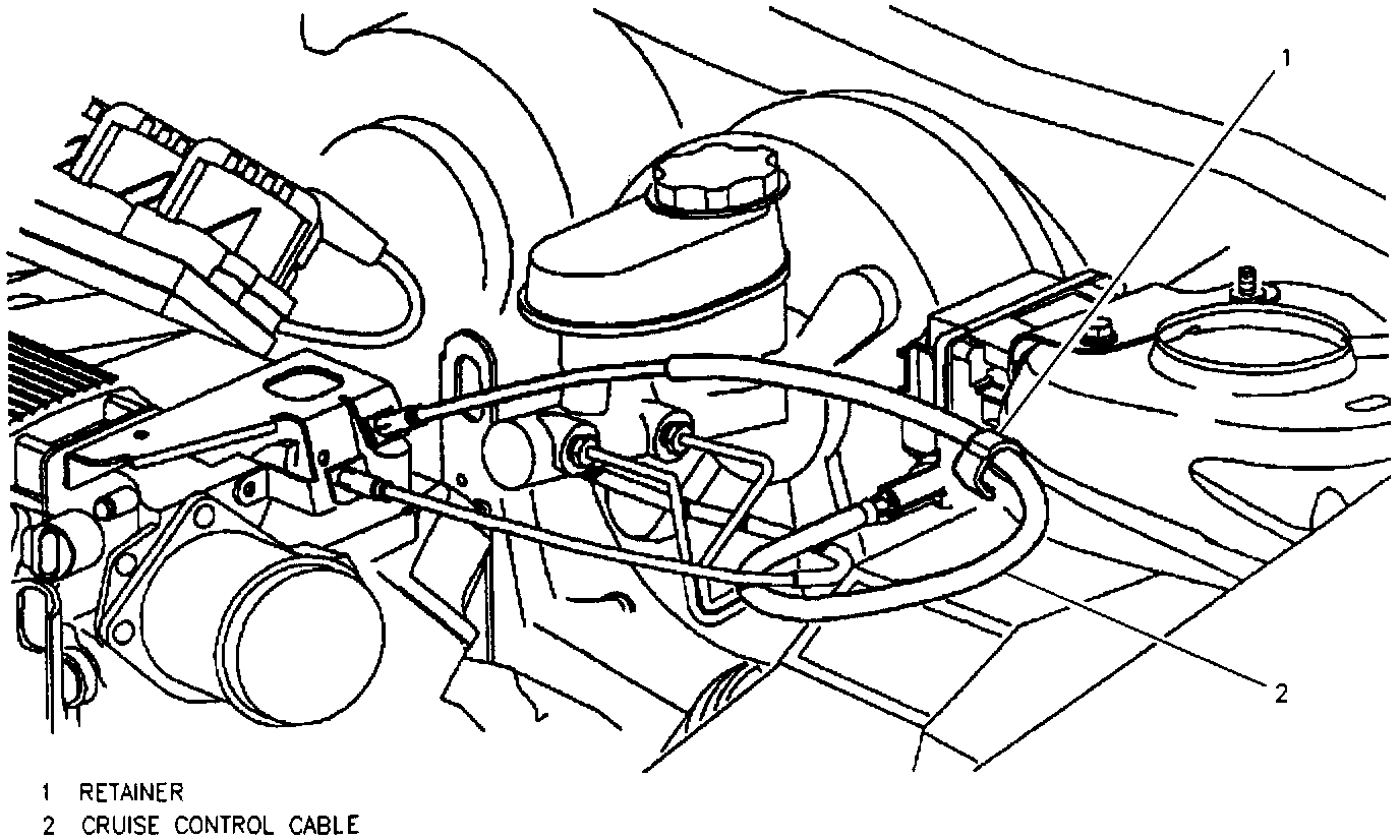 3. Cruise control cable from cruise control module. Turn cable lock until cable disengages from module.